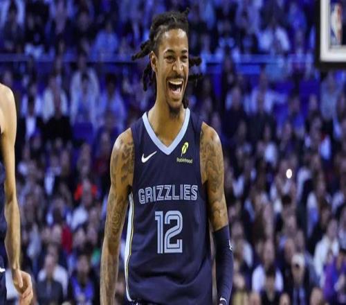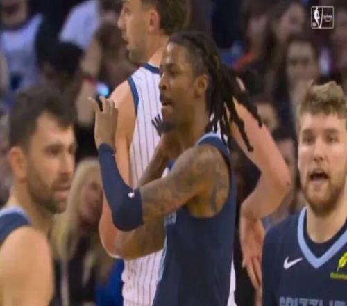 NBA伦敦赛 莫兰特干拔3分后“发射火箭筒”庆祝